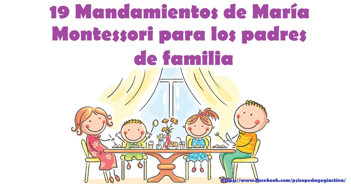 Home - Educación para padres - 19 Mandamientos de María Montessori para los padres de familia. Ser paciente, escuchar, no hablar mal frente a los niños, son algunos de los mandamientos que María Montessori redactó para los padres de familia. Se dice que sólo cuatro pedagogos del siglo XX revolucionarion la crianza de los niños.