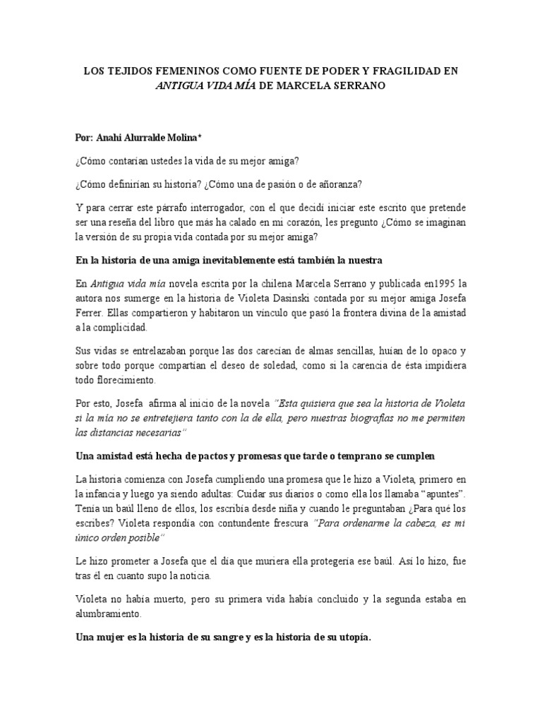 Segunda Reseña Correo Del Alba Antigua Vida Mía de Marcela Serrano A.M.A.M PDF