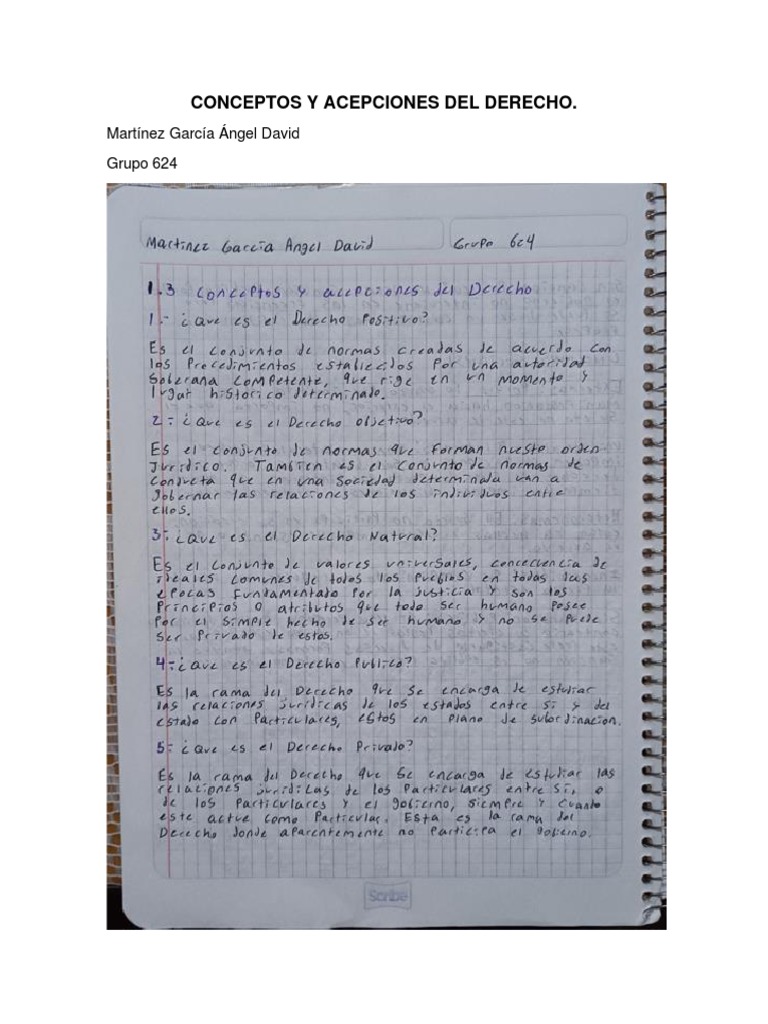 CONCEPTOS Y ACEPCIONES DEL DERECHO Martínez García Ángel David Grupo 624 PDF