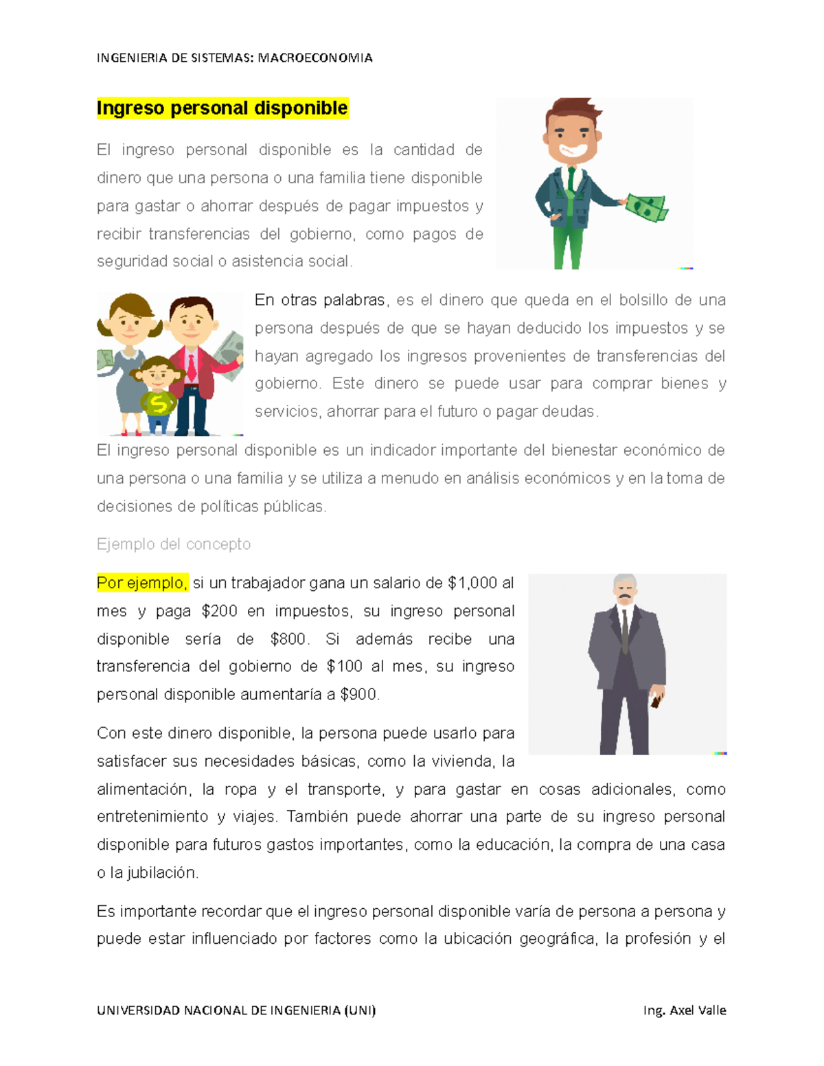 Ingreso personal disponible En otras palabras, es el dinero que queda en el bolsillo de una