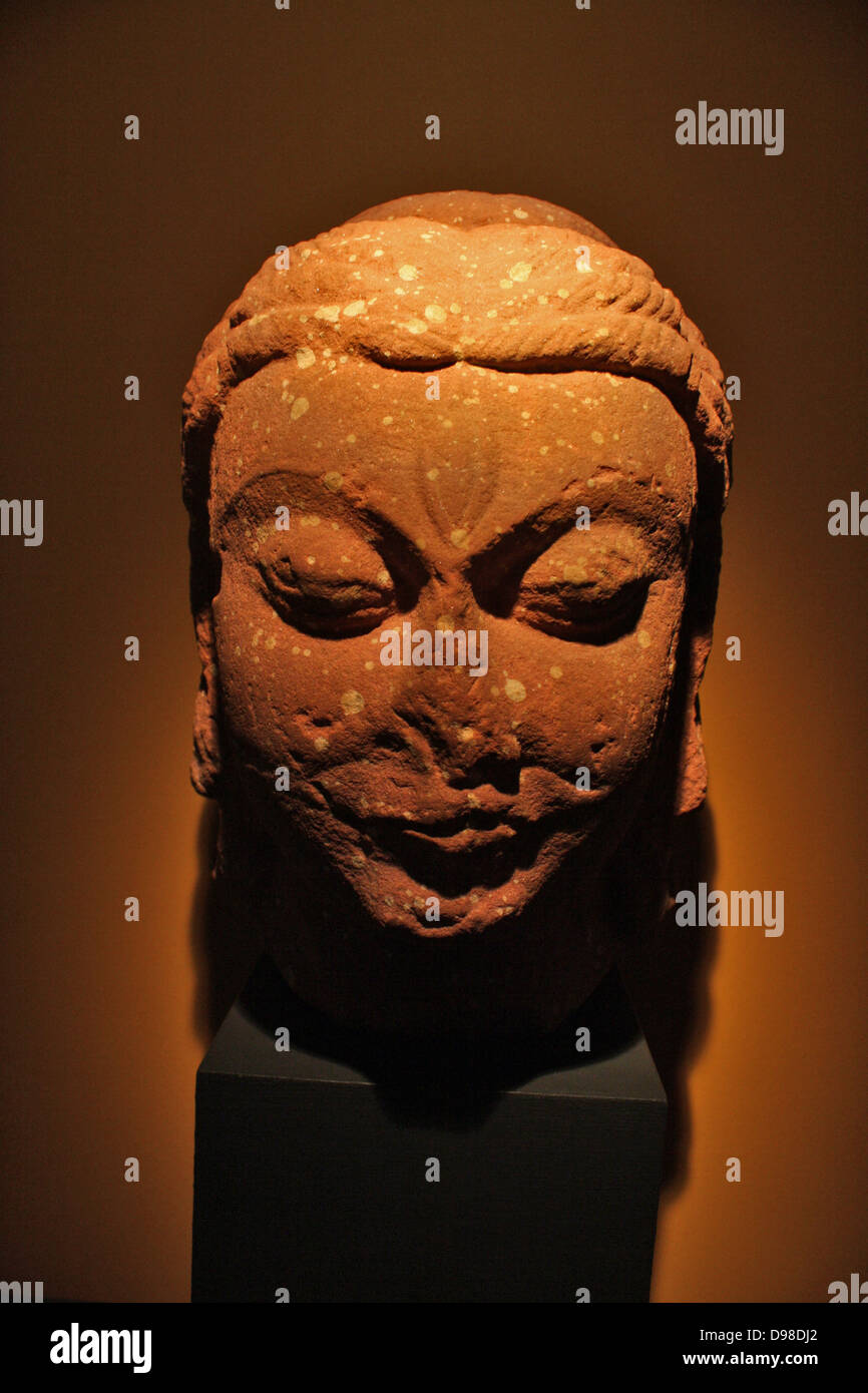 Cabeza de Shiva. Mathura, AD400425. La arenisca. Esta poderosa cabeza de Shiva, con bloqueos de