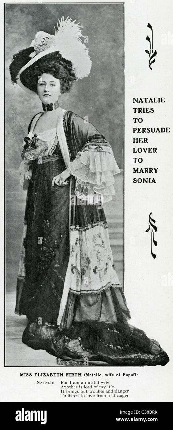 (La Viuda Alegre) la actriz Elizabeth Firth Natalie, la esposa de Popoff) lleva el famoso
