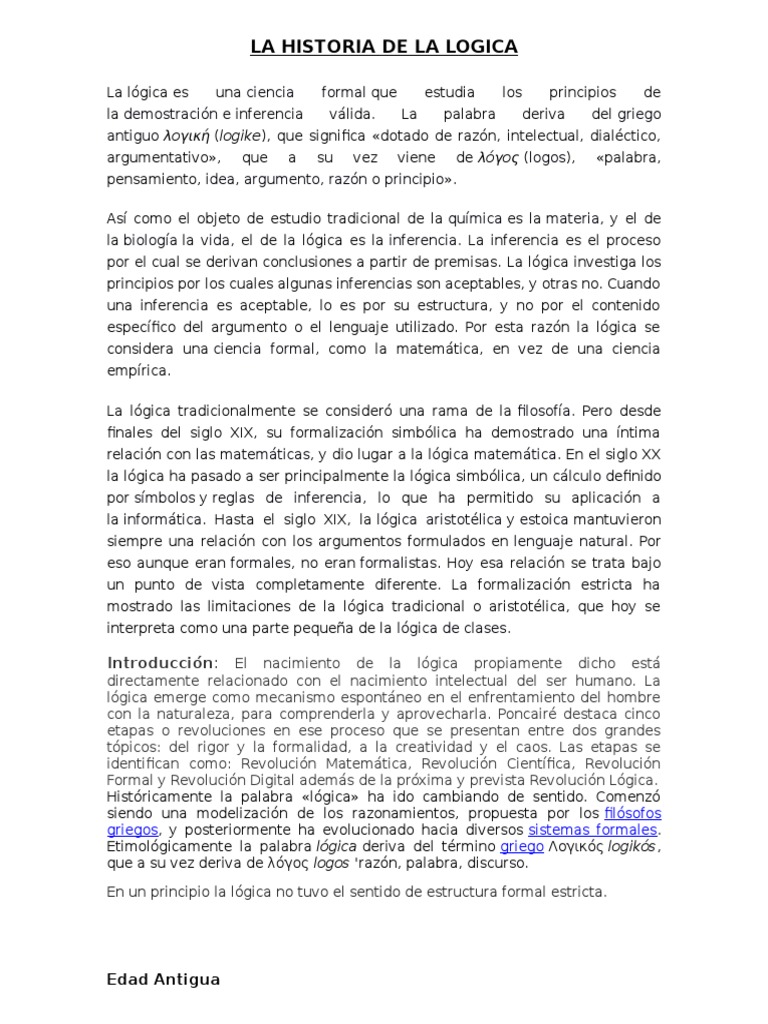 HISTORIA DE LA LOGICA Docsity