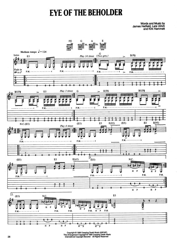 Eye Of The Beholder Guitar Tab by Metallica learn how to play chords diagrams. Eye Of The Beholder tab by Metallica with chords drawings, easy version, 12 key variations and much more. fresh tabs top tabs lessons submit videos . S subscribe share tweet. Eye Of The Beholder tab. Metallica.