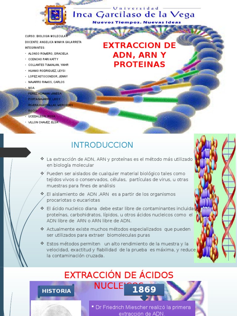 La extracción del ADN, una técnica imprescindible para la biología moderna actual. El conocimiento del ADN, su estructura y función fue crucial para el progreso de la biotecnología moderna. El ADN o ácido desoxirribonucleico, es una base de datos en la cual está contenida toda la información e instrucciones que determinan la forma y.