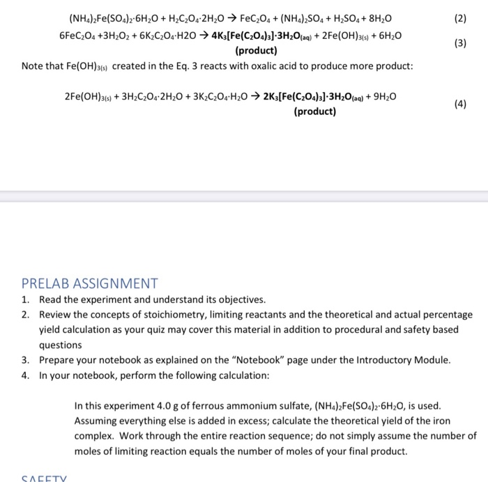 Solved (NH4)2Fe(SO4).6H2O + H2C2O4.2H2O → FeCO + (NH4)2SO4 +