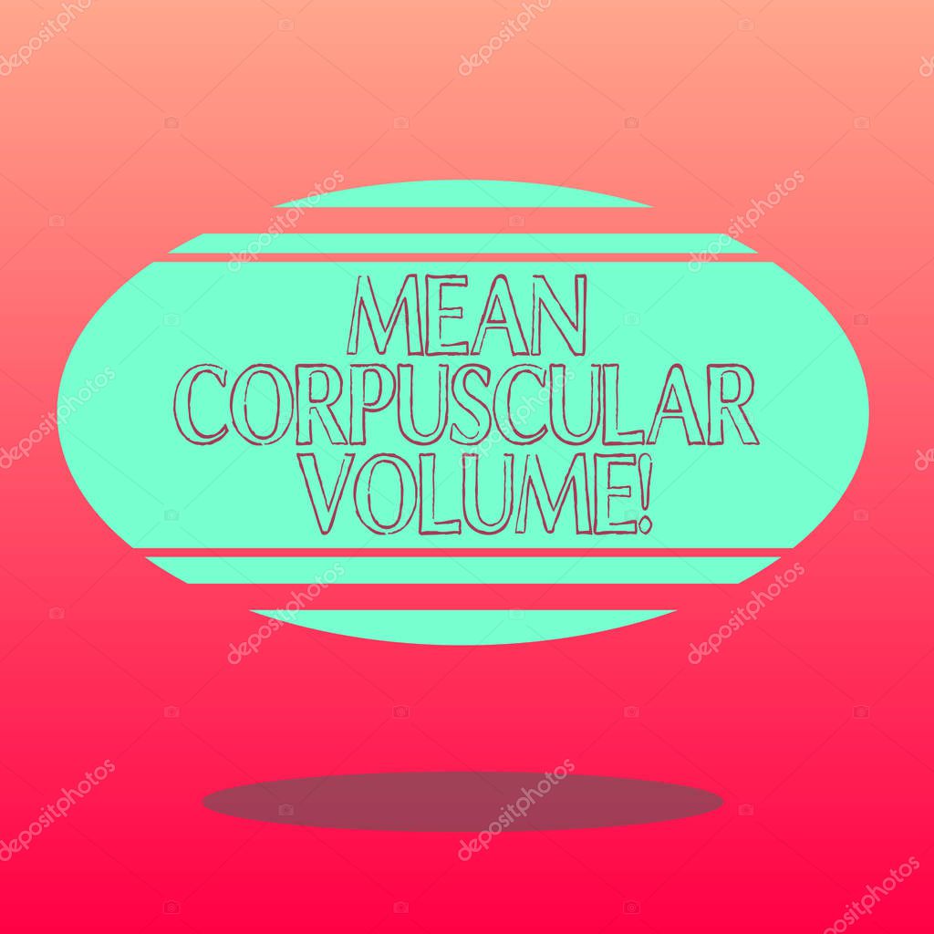 Escritura de texto a mano Volumen corpuscular medio. Concepto que significa volumen promedio de